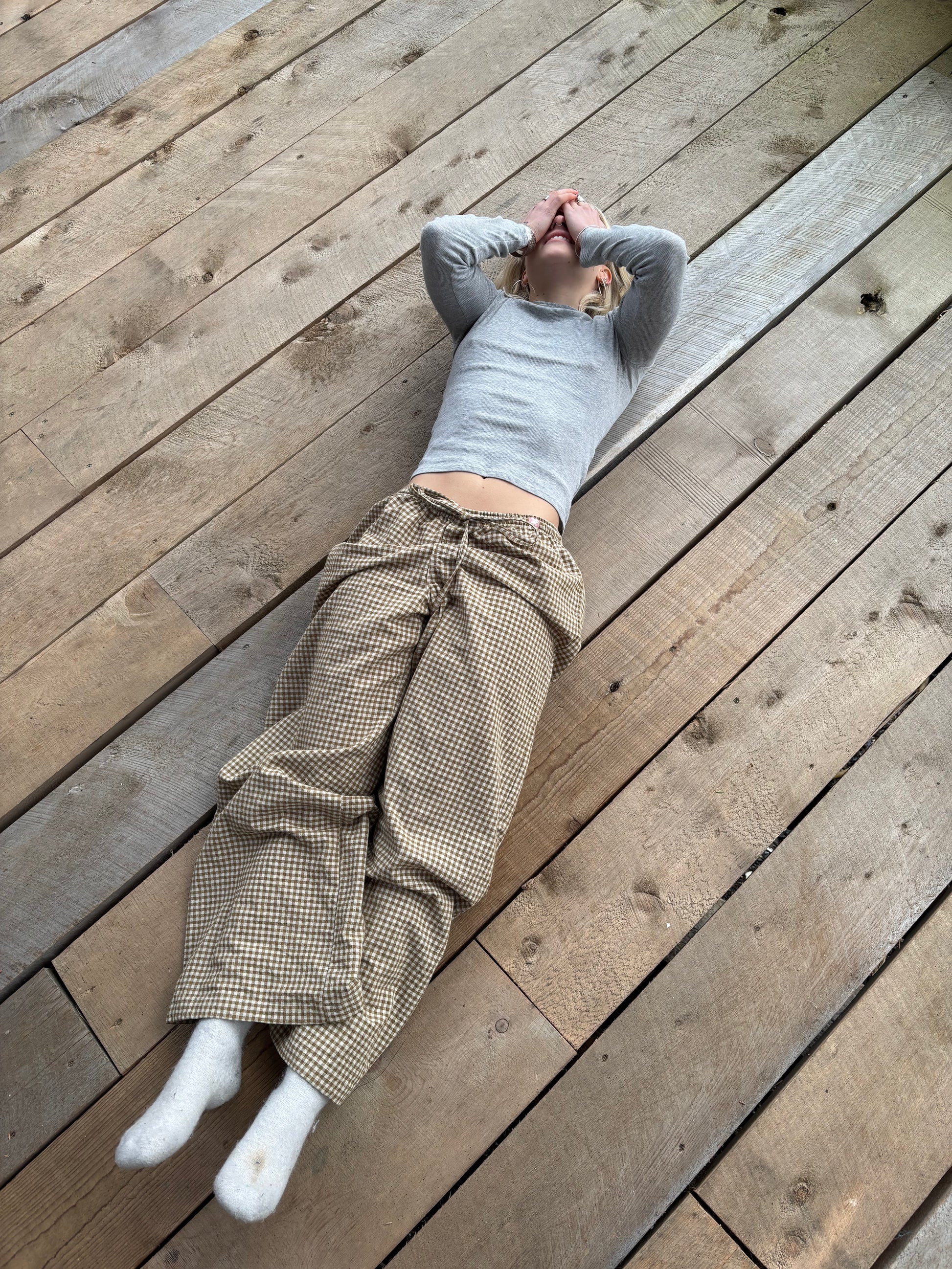The Plum Pant is a relaxed pant with a mid-rise fit and wide leg. Finished with our signature off-centre label at the waistband.