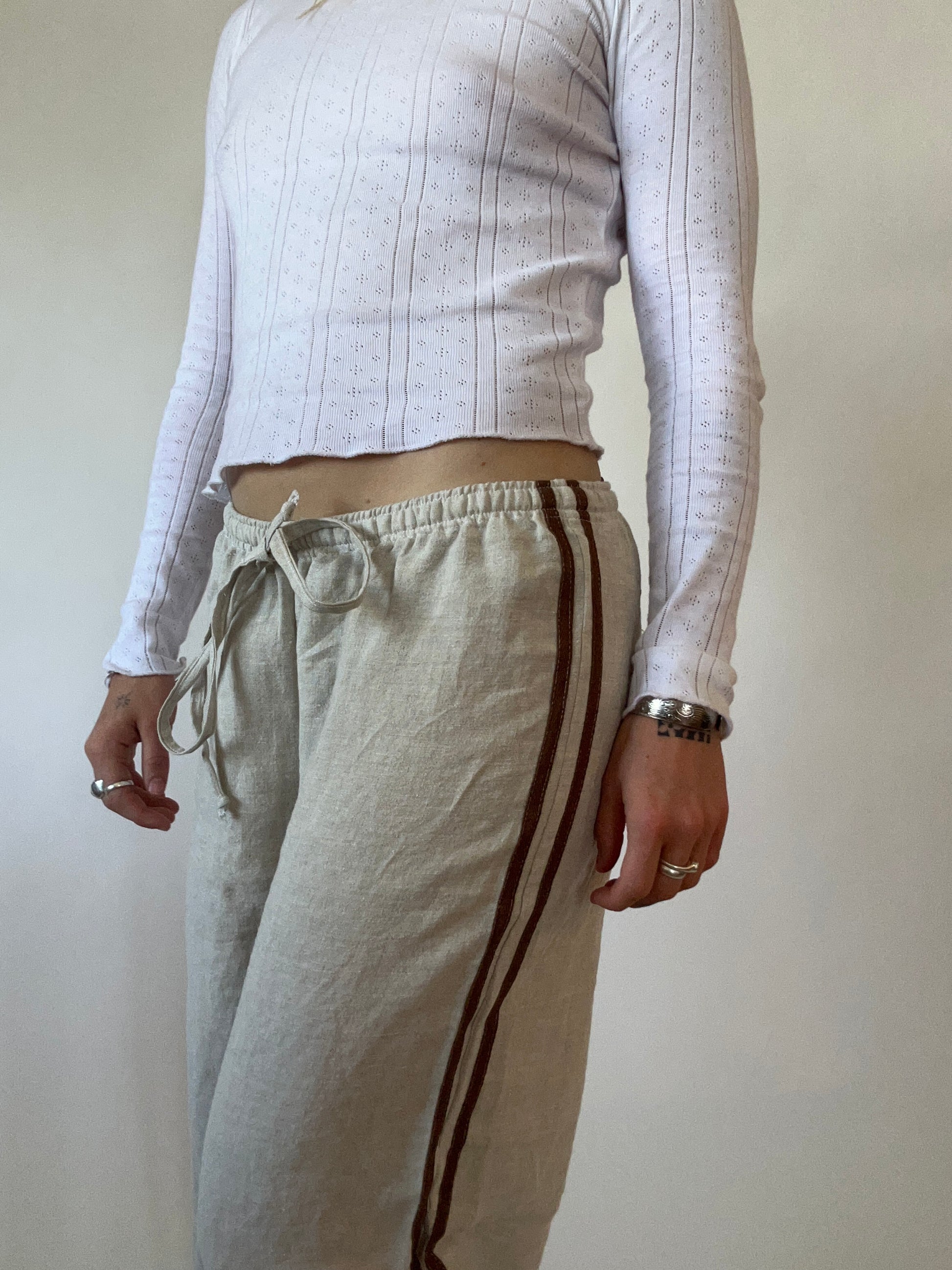 Meet the Tate Track Pant. A relaxed, everyday pant with an easy silhouette. Handmade from 100% linen, they feature a soft elastic waistband, a straight leg and a mid-rise.